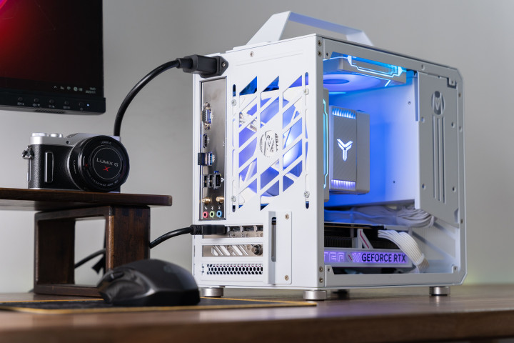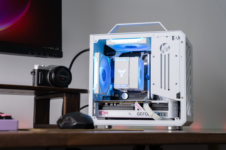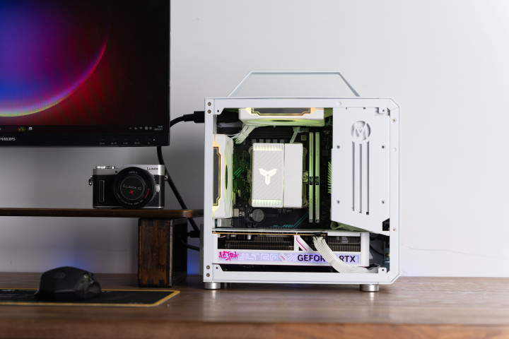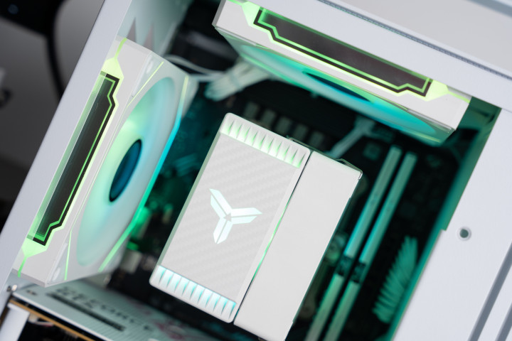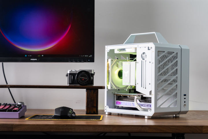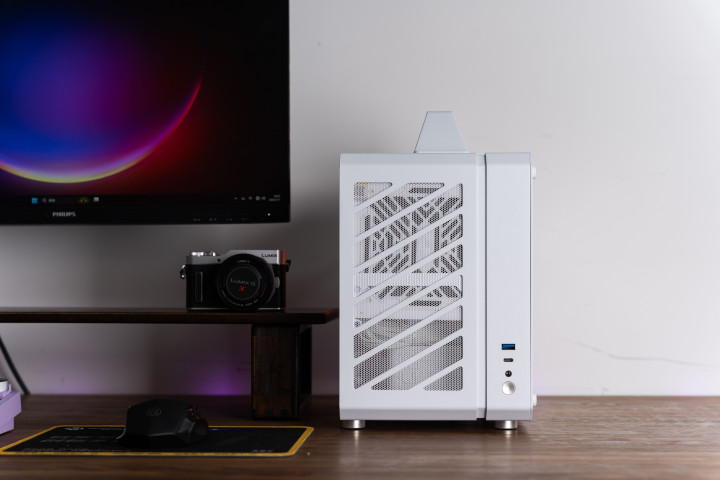 尽管体积极限,但是可以主板区域打造三片风扇围绕散热器直吹,散热表现非常不俗,适合用来打造各种顶尖CPU的性能小钢炮